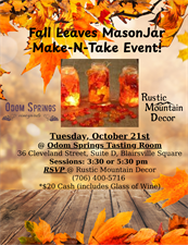 Odon Springs Tasting Room! All supplies are included - $20 cash - please RSVP by 10/20 @ (706) 400-5716.